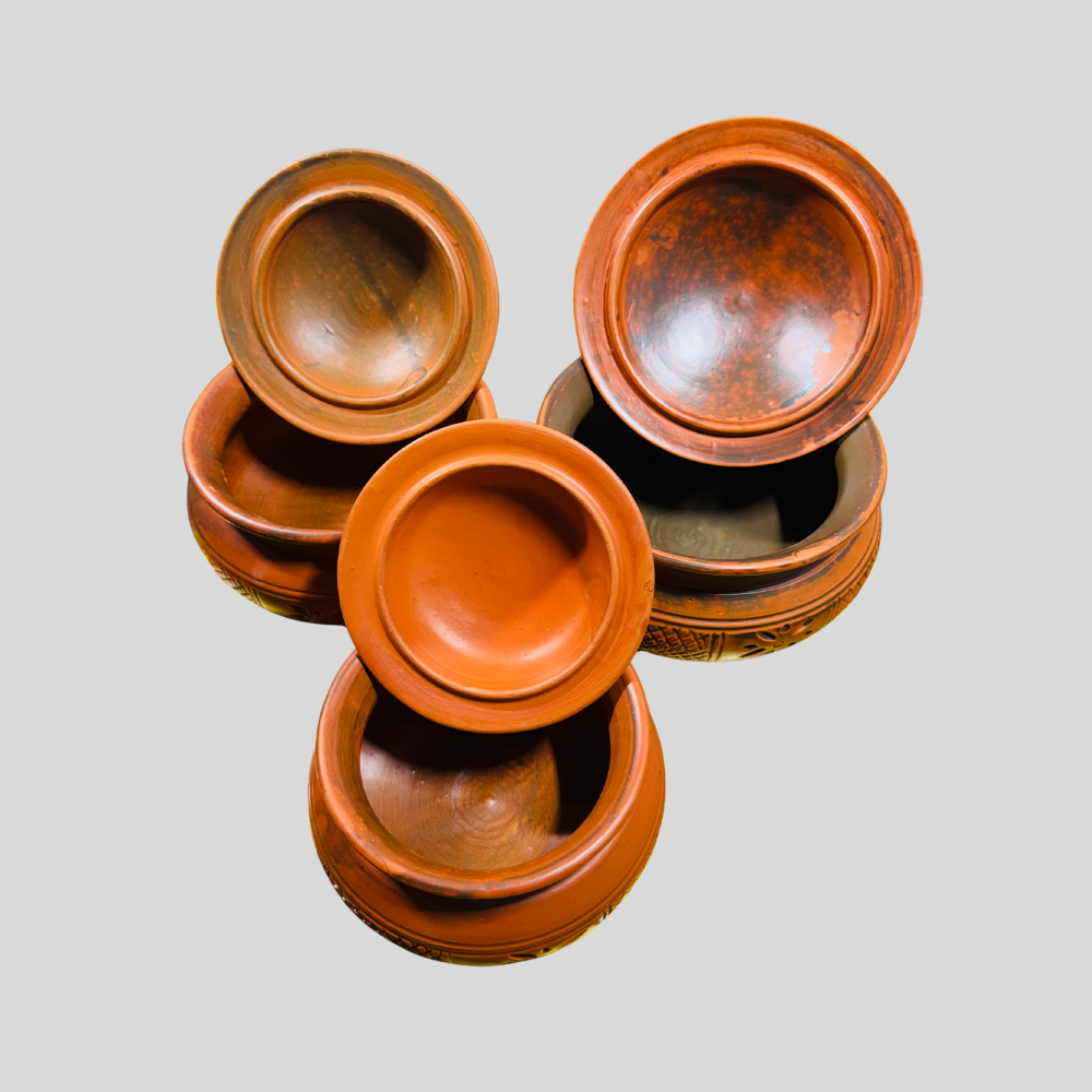 মাটির পাতিলে রান্না করলে খাবার ধীরে ও সমানভাবে সেদ্ধ হয়, ফলে মাংস, মাছ বা সবজির স্বাদ থাকে আরও গভীর ও স্বাস্থ্যকর। ঢাকনাসহ এই পাতিলগুলো তাপ ধরে রাখে এবং রান্নার সময় পানির প্রয়োজন কম হয়।